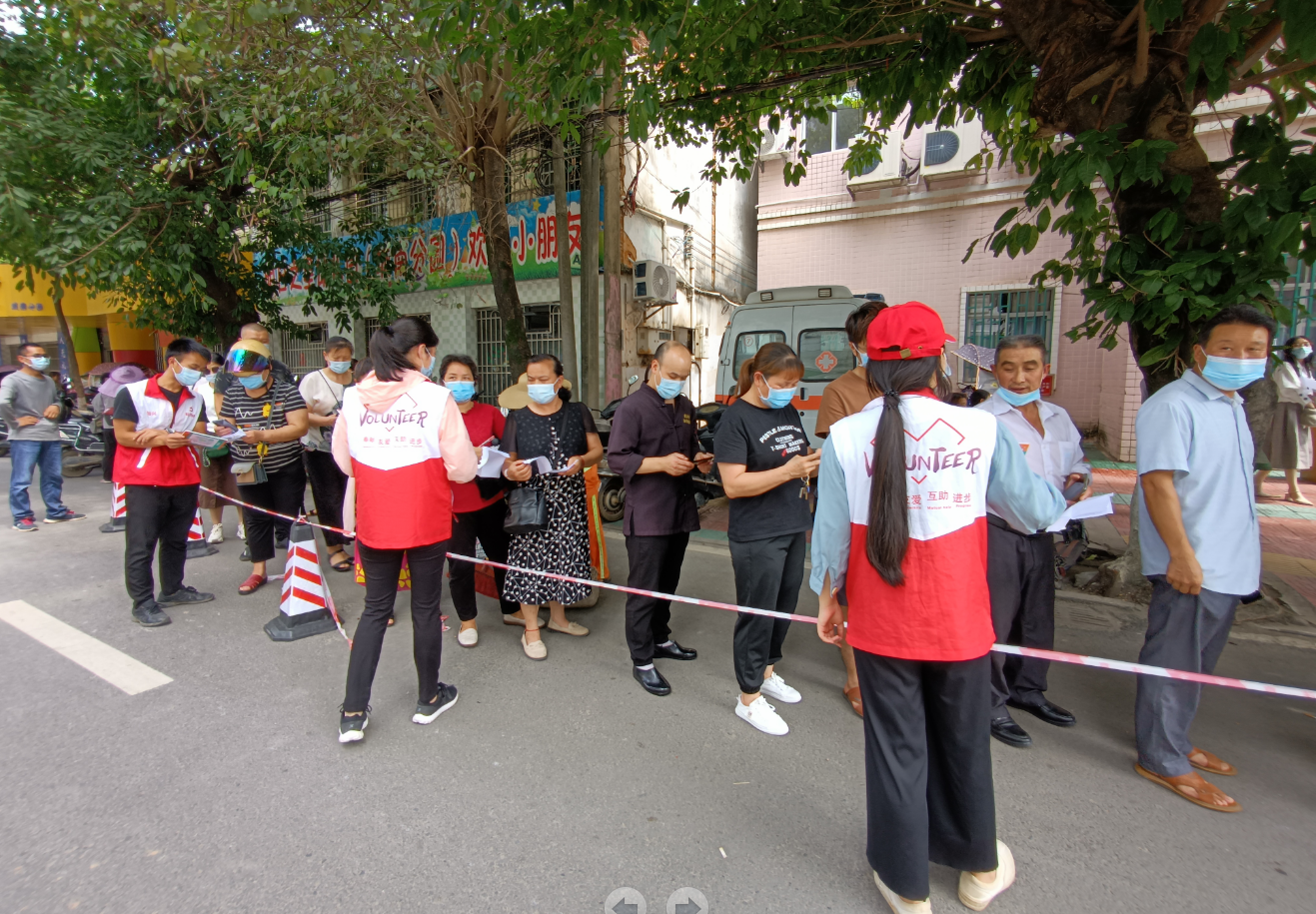 冒着炎炎酷暑,志愿者们每天组成2个小组,分别在不同时间段前往接种点,协助医务人员,对前来接种疫苗的群众开展秩序维护、粤康码和行程卡检查、接种引导和防疫反诈知识宣传等工作。通过志愿者和医护工作者的努力,城南卫生院接种工作秩序井然、安全高效,得到了现场群众的一致好评。