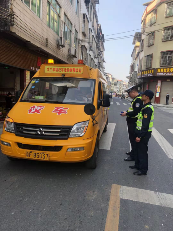 为进一步加强校车安全管理,规范校车运营行为,消除校车及校车运营线路道路交通安全隐患,有效预防校车安全事故,提高校车驾驶员、随车照管员的安全责任意识,切实维护学生上下学安全,3月25日,在教育局的牵头下,由交通运输局、交警大队组成行动小组,前往隘子镇开展联合整治行动。