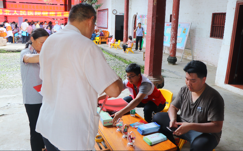 为进一步提高广大人民群众的保健意识,更好地了解自己身体情况,做好疾病预防工作,沈所团镇委于5月16日联合韶关市粤北人民医院到沈北村邓氏宗堂开展“健康直通车”志愿服务活动,以实际行动将先进医疗健康知识和贴心义诊服务送下基层,送进广大村民身边。