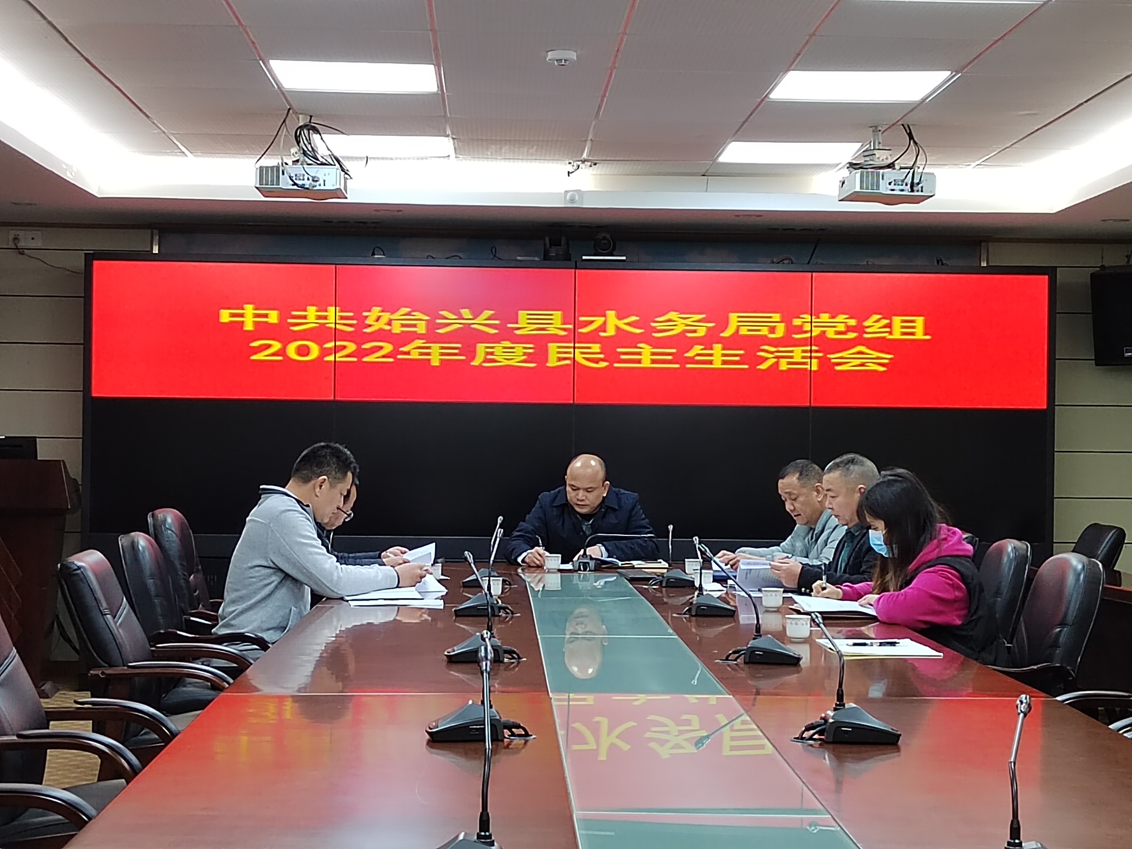 2023年2月13日,始兴县水务局党组召开2022年度民主生活会,紧扣:全面贯彻习近平新时代中国特色社会主义思想,深刻领悟“两个确立”的决定性意义,增强“四个意识”、坚定“四个自信”、做到“两个维护”,团结带领党员干部群众以奋发有为的精神贯彻落实党的二十大作出的重大决策部署的主题,对照党的二十大精神和党章党规党纪,认真查摆问题,进行党性分析,严肃开展批评和自我批评,务实制定整改措施。