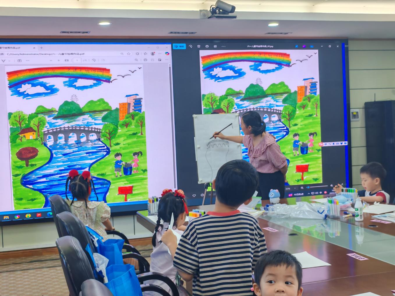 最令人动容的当属亲子互动环节,父母与孩子相互表达爱意与感激,一句句真挚的话语,让现场弥漫着温情与感动。随后的“守护河湖之美,共绘碧水蓝天”主题绘画创作,更是将活动推向了高潮,在水利系统绘画能手朱晓玉的带领和耐心指导下,孩子们与家长携手,挥动画笔描绘心中的美丽河湖与家园,每一幅作品都充满了童真与创意,凝聚着对河湖的热爱与对美好生活的向往,将优良家风与生态理念融入笔触之间。