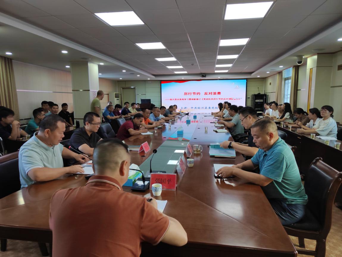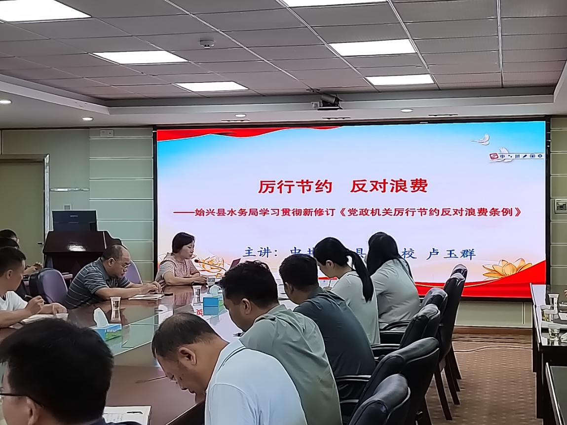 2025年9月8日上午,始兴县水务局举行《党政机关厉行节约反对浪费条例》专题学习会,邀请县委党校副校长卢玉群作专题辅导。局领导班子成员及全体干部职工参加学习。