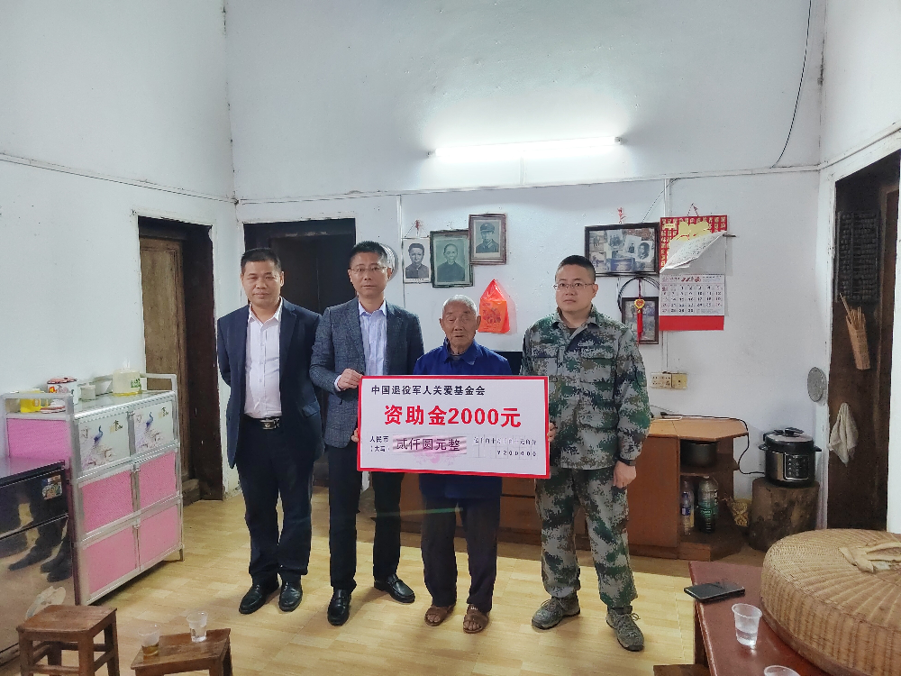 为加强军人军属荣誉激励和权益保障,做好退役军人服务保障工作。11月17日下午,始兴县退役军人事务局局长赖善发、副局长何衍富与顿岗镇人民政府武装部部长雷万新共同到七北村“双烈属”何观生的家中走访并慰问,了解他及家人在生活中遇到的困难及所想、所需、所盼,倾听他们的心声,同时送上了中国退役军人关爱基金会慰问金2000元。
