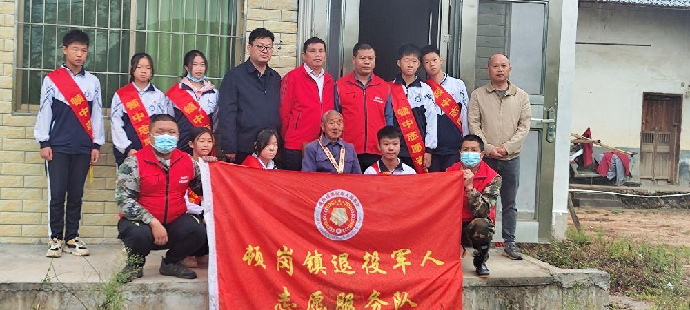 在党的二十大报告结尾部分,习近平总书记说道:“青年强则国家强。”《少年说》中也有这样一句话:少年强则国强。鲜花易折,需要精神的供养。为充当好青年群众的引路人,巩固发展军政军民团结。顿岗镇退役军人志愿者服务队联合顿岗中学志愿服务队,带领着年轻的共产主义青年团团员来到了七北村“双烈属”何观生的家中。孩子们静静地围坐在何观生爷爷的周围,聆听着何爷爷诉说着曾经的过往,94岁高龄的何爷爷仿佛回到了少年,回到了那个不畏艰险、不畏困难,只为祖国安好的年代。