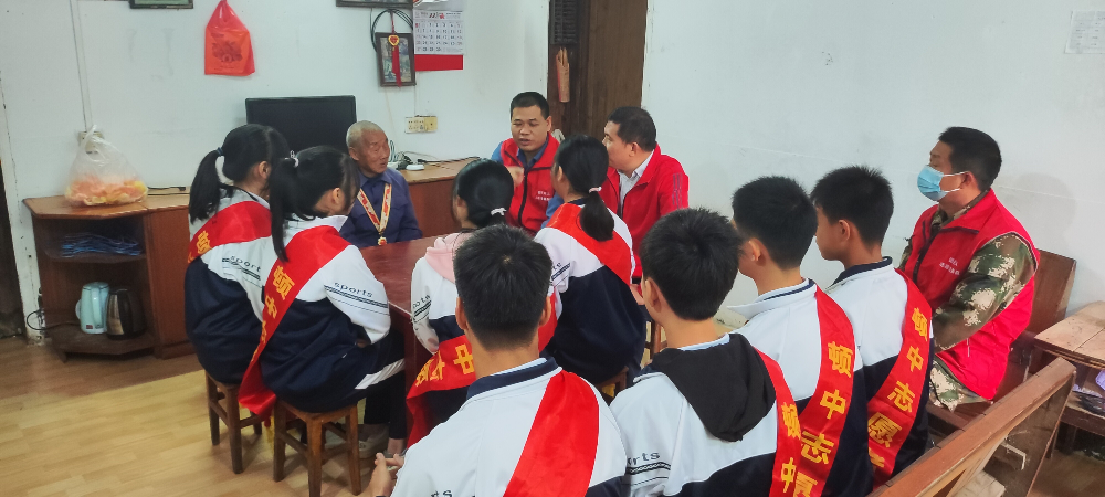 11月16日上午,始兴县顿岗镇退役军人志愿者服务队联合顿岗中学志愿服务队来到了该镇七北村“双烈属”、退役老兵何观生的家中,开展“聆听革命事迹,传承红色基因”活动。