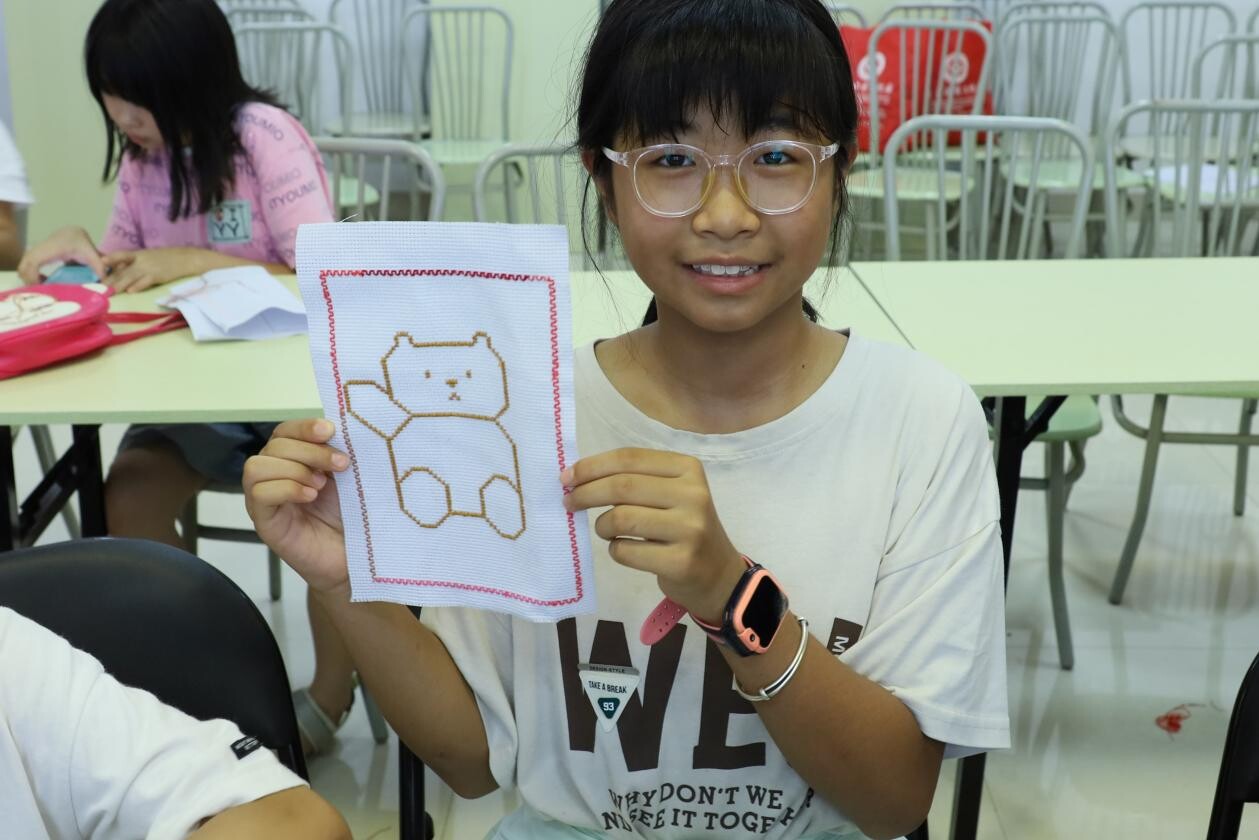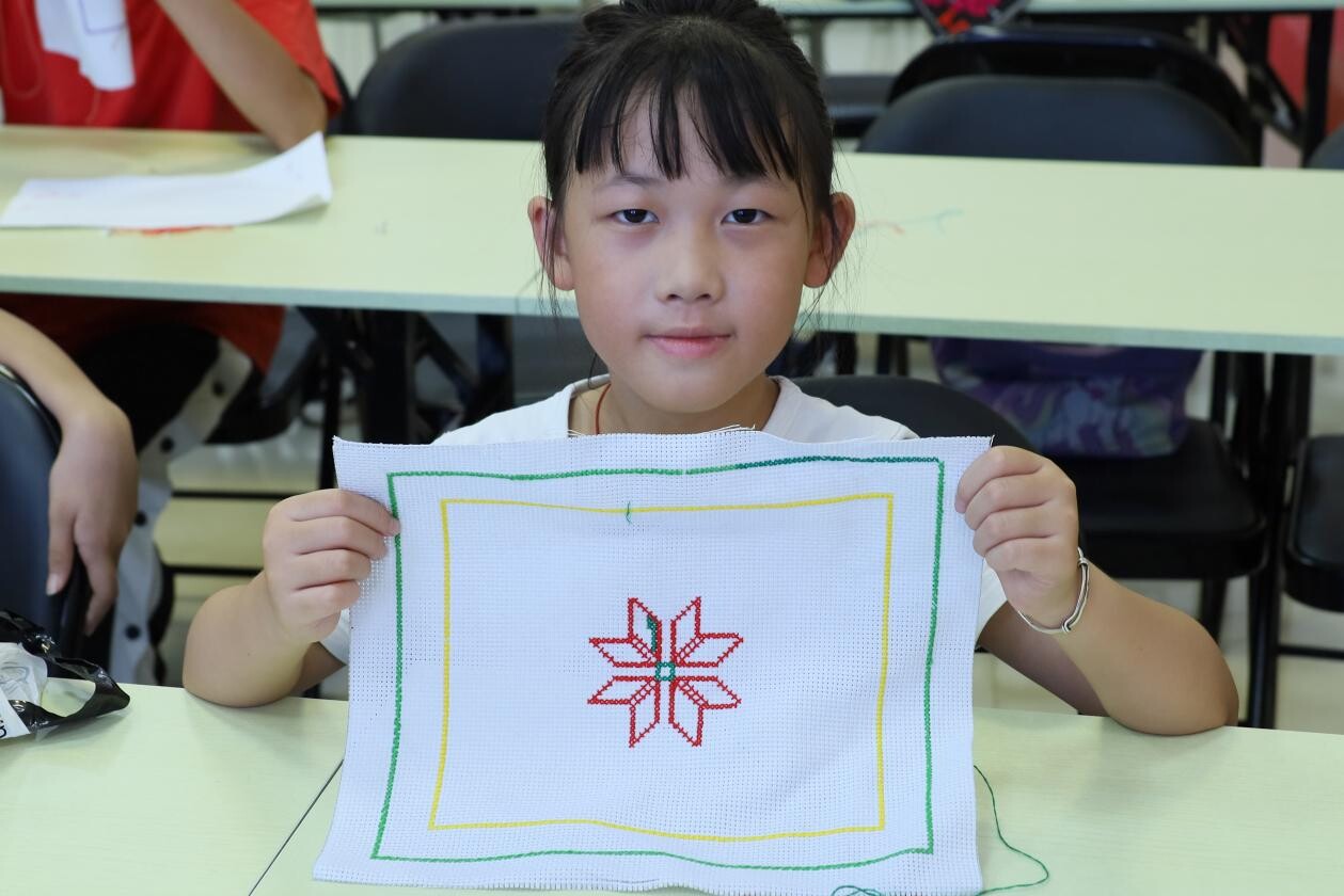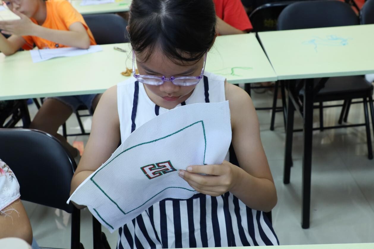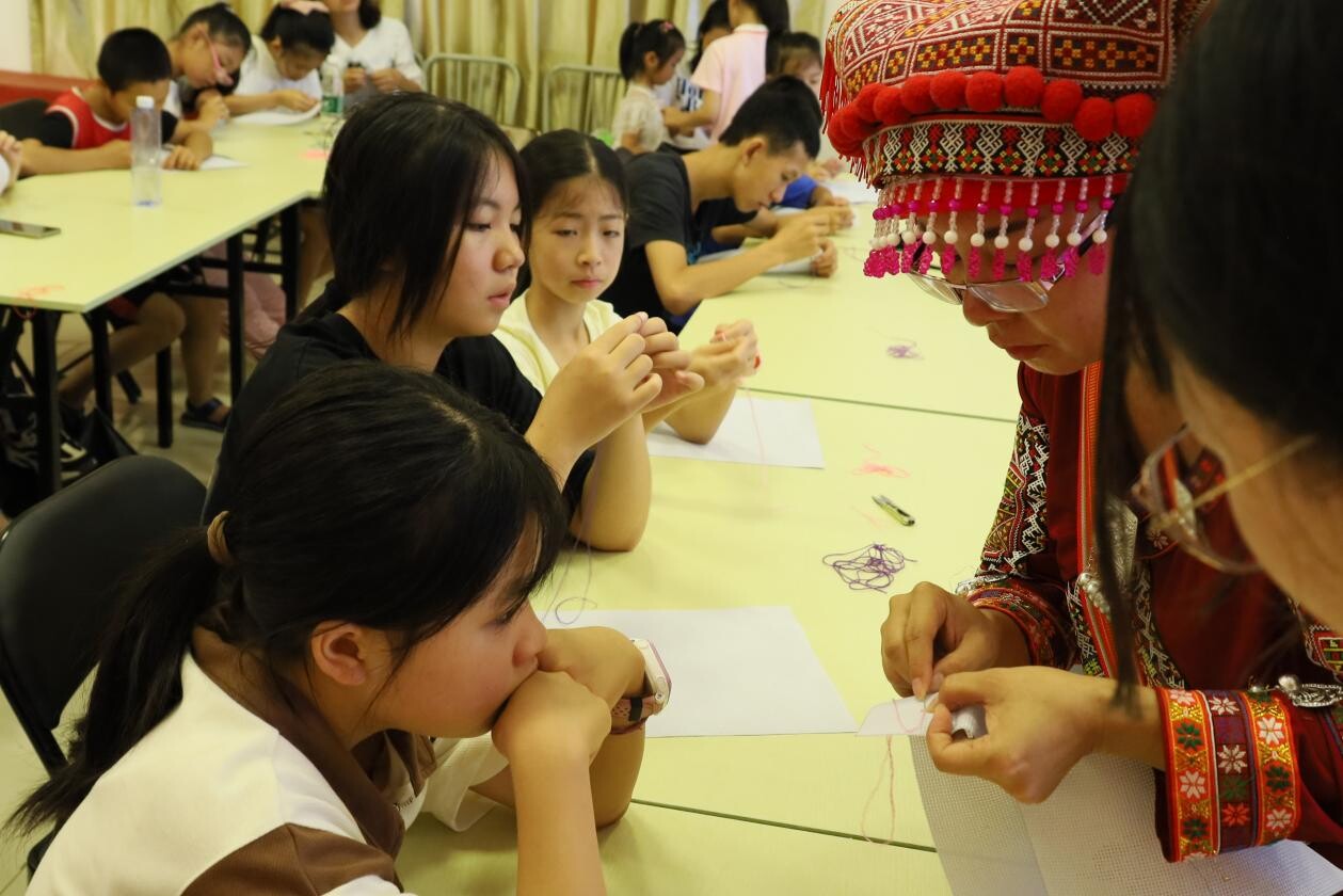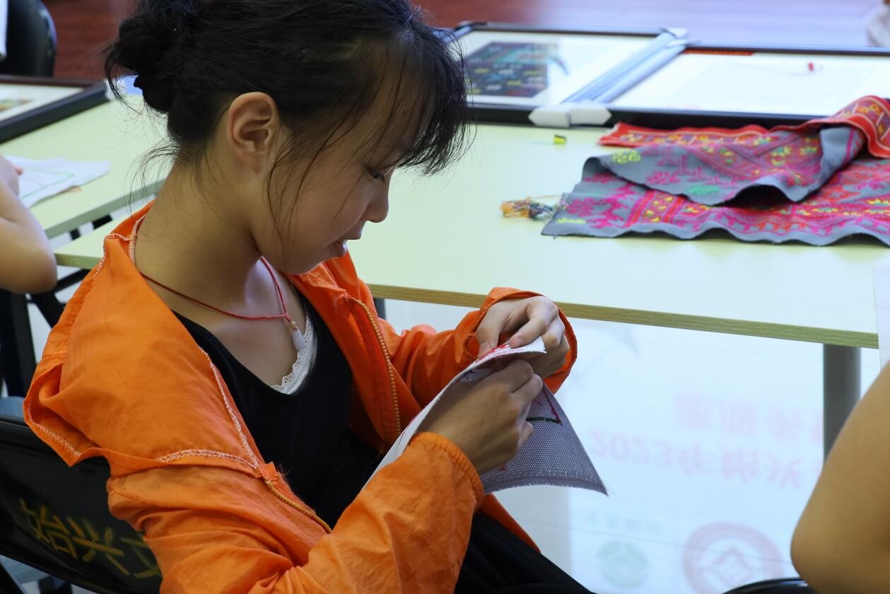 培训班的小学员说道:“刚开始学时有些难度,因为总是搞不清楚下一针要下在哪里,线也容易从针头里跑出来,而且怎么藏线,最后怎么打结也是一个难题。”面对刺绣学习过程中遇到的困难,同学们都拿出耐心和毅力来应对。同学们悉心请教老师,老师也极富耐心地手把手教学。一次次地尝试和改正,最终学员们都掌握了瑶绣的基础绣法。