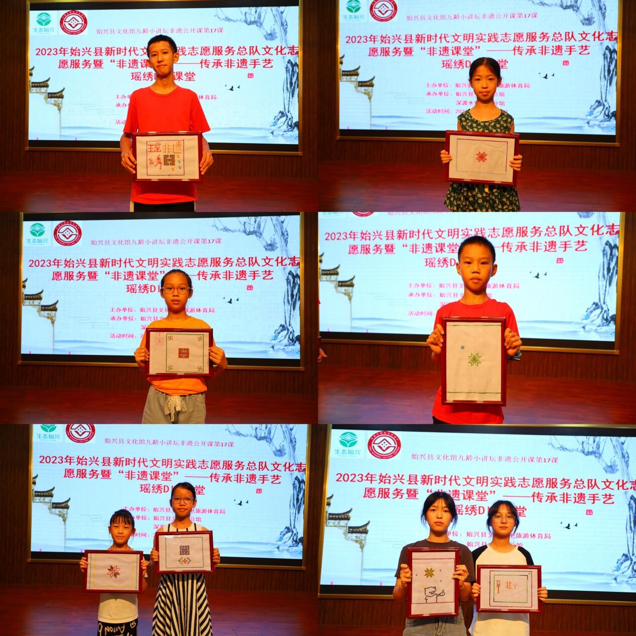 在培训班的最后,老师组织同学们将自己绣好的作品进行装框并合影展示。学员们将成品带回家中,这不仅是孩子们努力的成果,更是与非遗文化近距离接触的见证。