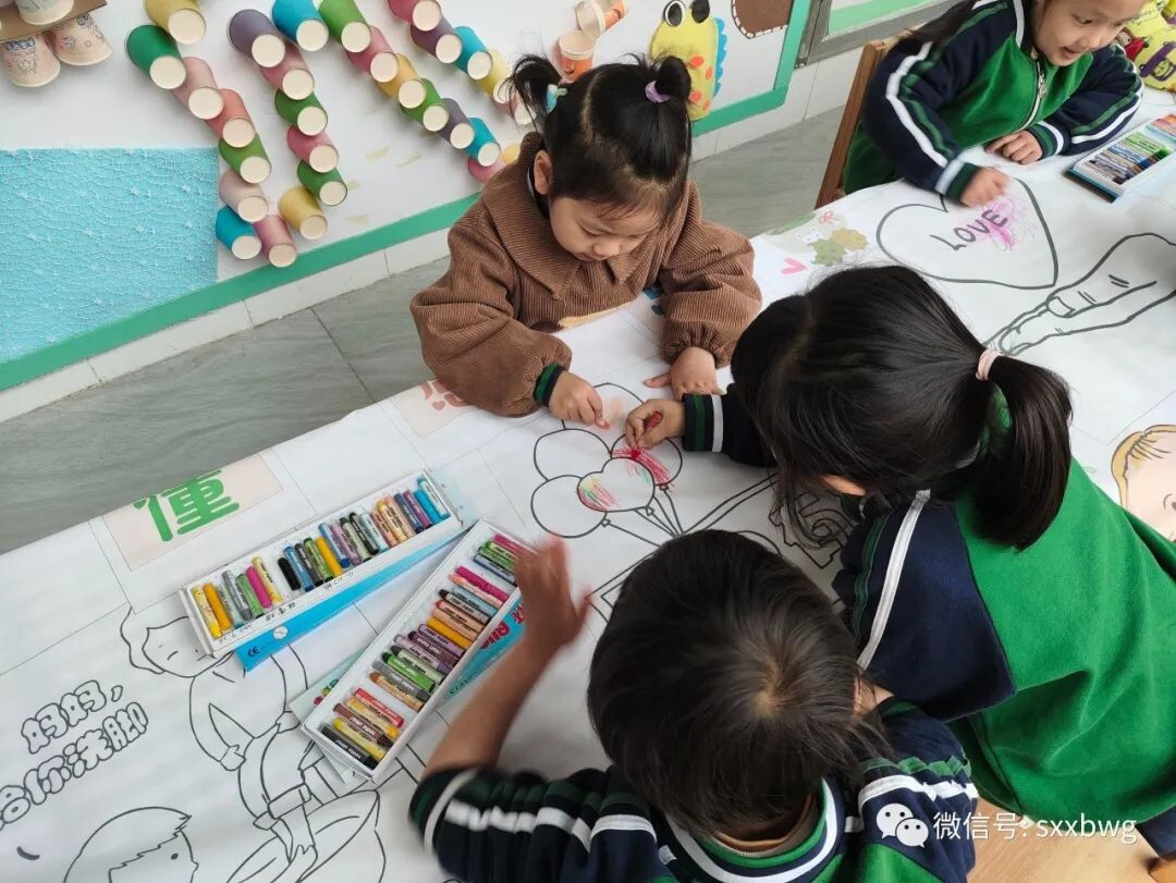 第二个活动是感恩父母绘画活动,小朋友们排排坐,迫不及待地拿起画笔在画布上留下五彩斑斓的色彩。