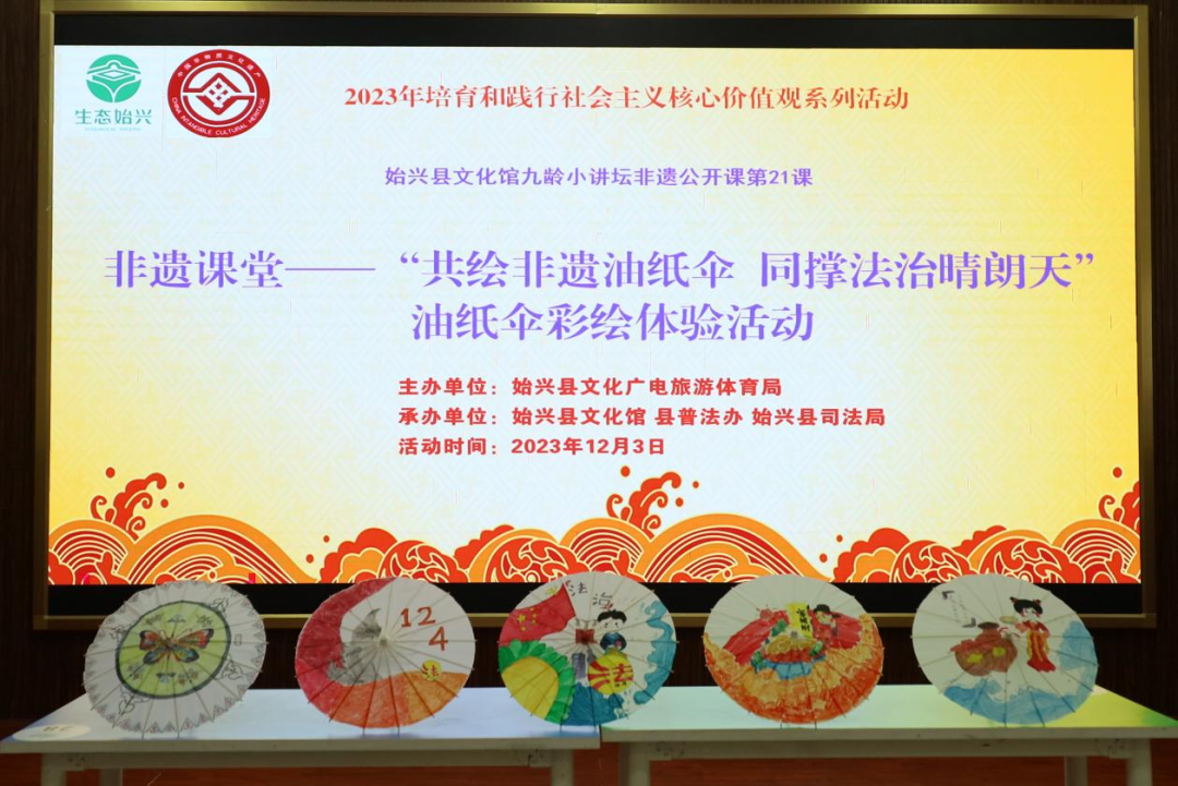 12月4日为我国的国家宪法日,始兴县文化馆联合县普法办、县司法局以“共绘非遗油纸伞