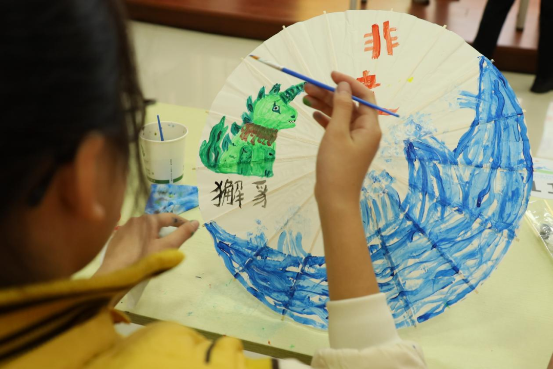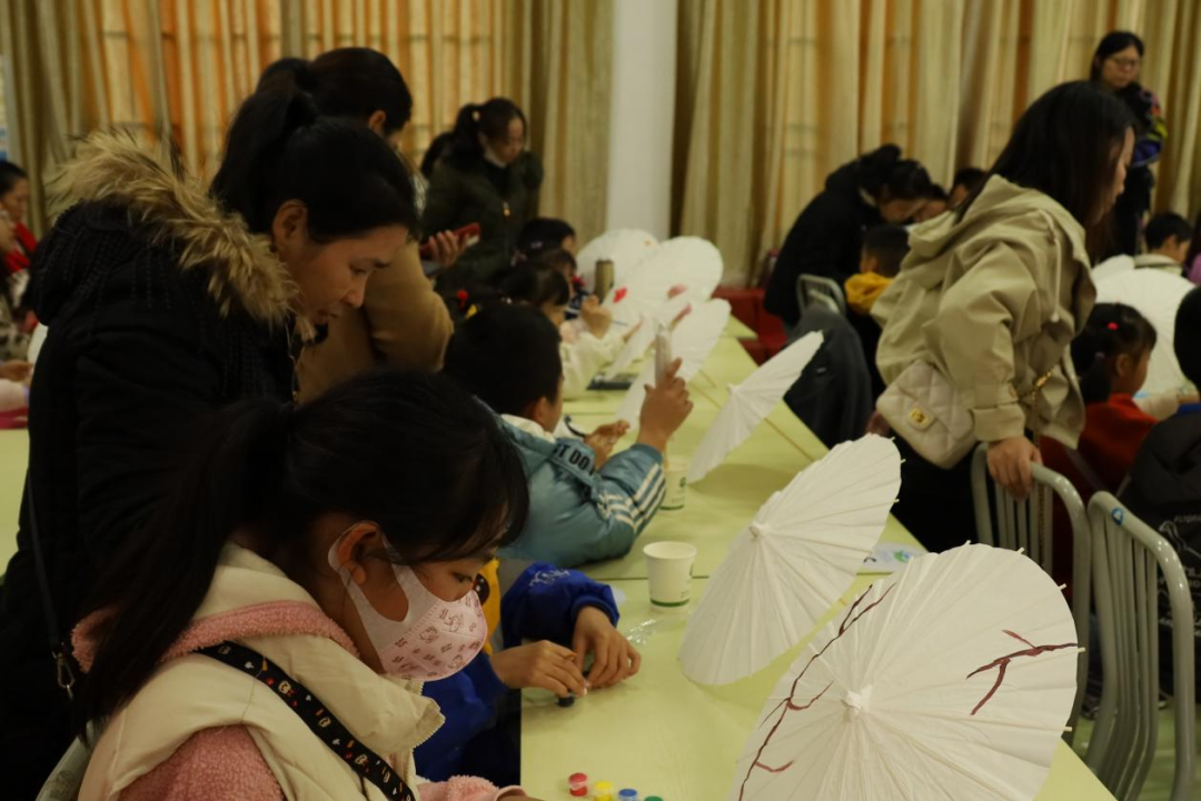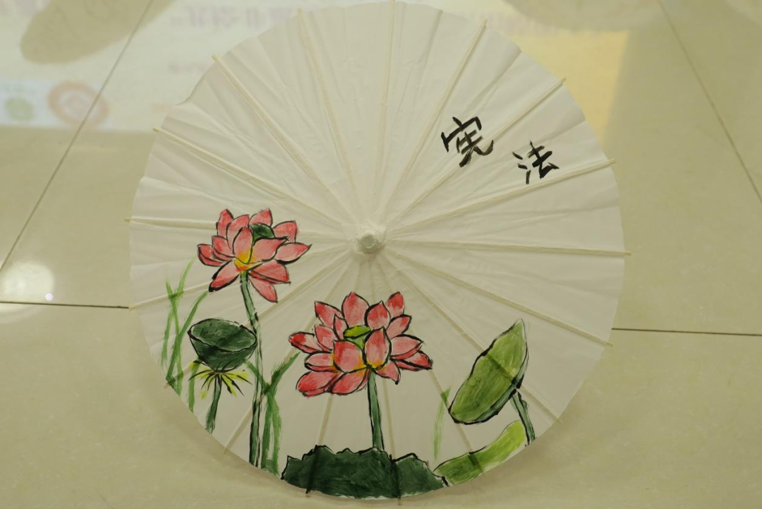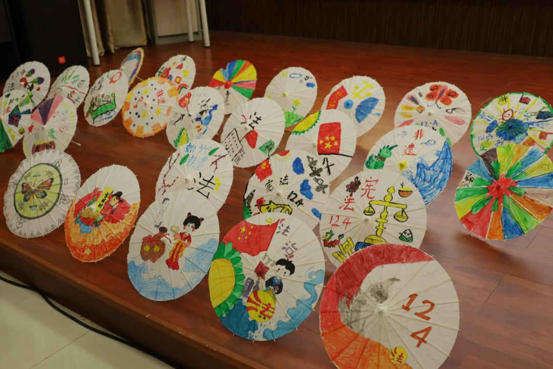 同撑法治晴朗天”为主题,举办了一场非遗油纸伞彩绘活动,共有50组亲子家庭参与此次活动。