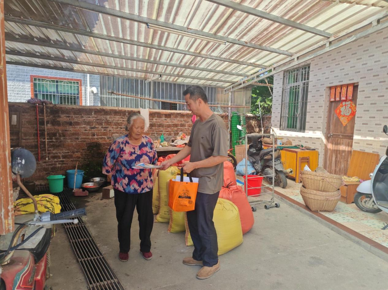 入户排查宣传是防控工作的关键一环。志愿队队员们分成5个小组,配合卫生院逐村逐户开展排查。他们耐心询问村民健康状况,仔细登记家庭成员信息,重点排查是否有发热、关节疼痛等基孔肯雅热典型症状。同时,结合基孔肯雅热通过伊蚊传播的特点,向村民普及防蚊灭蚊知识,指导大家清理家中积水容器、做好室内外卫生,从源头切断传播途径。遇到行动不便的老人,队员们还主动帮忙打扫庭院、清理杂物,用贴心服务赢得群众点赞。“小伙子们耐心又细心,不仅帮我们登记信息,还教我们怎么防蚊子,有他们在,我们心里踏实多了!”家住蓝屋角的王奶奶笑着说。
