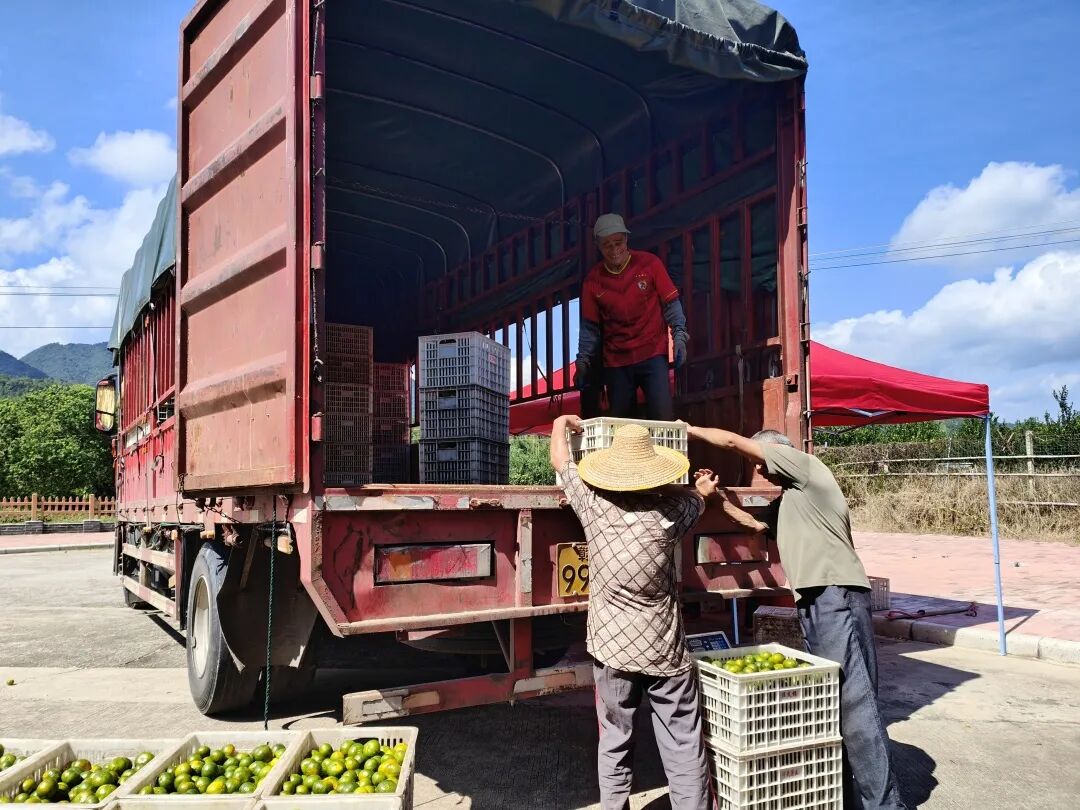 看着工人把采摘下来的蜜桔经过分拣,称重,装进筐里抬上大货车,农场主刘县明脸上洋溢着丰收的喜悦。