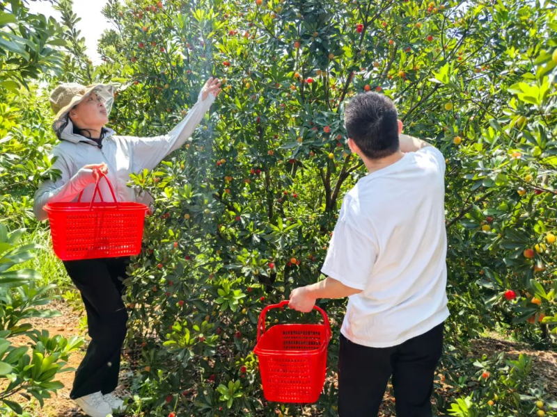 果园内,园主饶平安夫妇正忙着采摘成熟的杨梅。饶平安介绍道,“王子安海”杨梅口感软糯,汁水丰盈,糖度高、酸度低,品质上乘,深受消费者喜爱。许多老客户早早便翘首以盼,当天采摘的杨梅全部被预订,将打包发往各地。