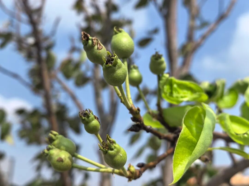 这看似浪漫的“逆季美景”,实则是梨树出现的“二次开花”现象,背后暗藏危机。县农业技术推广中心专家解释,梨树此次“误判”季节,主要因前期气候异常打乱了其正常生理周期,促使花芽提前分化。这种应激反应会大量消耗树体储存的养分,不仅影响当前青果生长,更会严重降低来年的挂果率,导致果实品质大打折扣。梨树一年的养分储备是有限的,现在开花结果,相当于“透支”了明年的能量。若后续气温持续波动,可能有更多果树出现类似情况,需果农及时采取修剪花枝、补充养分等措施,减少树体损耗。