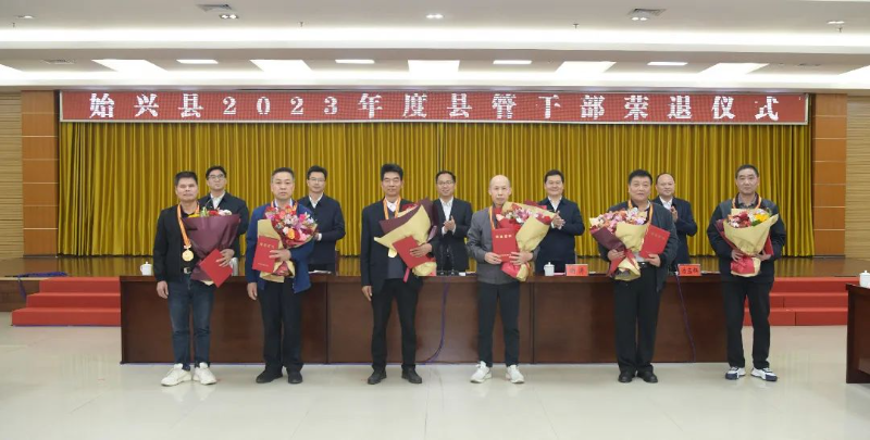 仪式现场气氛温馨轻松,华关等县领导分别为荣退干部颁发荣退纪念章和荣退证书,并为他们送上鲜花。在交流发言环节,荣退干部深情回顾了几十年的工作心路历程和峥嵘岁月,分享了心得体会。大家表示,自己既是始兴多年来历史变迁的见证者,也是始兴经济社会发展的参与者,退休之后,将发挥退休不褪色、桑榆显担当的工作作风,持续为始兴的各项事业发展贡献“银发力量”。 华关代表县委、县政府对荣退干部表示感谢和崇高敬意,他指出,几十年来,大家在各条战线上艰辛付出、恪尽职守、勇于担当,在始兴的一草一木、一砖一瓦中都留下了奋斗的足迹,为始兴高质量跨越式发展打下了好基础、蹚出了好路子、树起了好作风。县委、县政府将认真贯彻执行党的老干部政策,一如既往地重视和加强老干部工作,用心用情为大家办实事、解难题,让大家心情更舒畅,生活更美满。