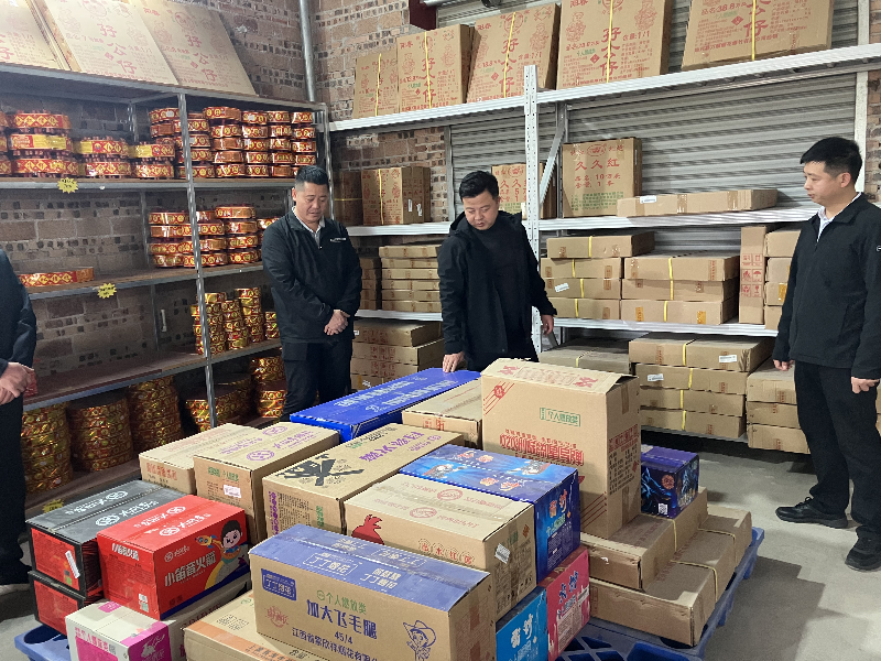 在城南镇微微烟花爆竹专卖店、路群烟花爆竹专卖店,王在腾走进门店和仓库,详细了解烟花爆竹进货渠道、销售情况和安全管理措施落实情况,要求经营业主落实安全生产主体责任,严格落实“五个严禁、三个务必”八项硬措施,切实防范烟花爆竹安全风险隐患。