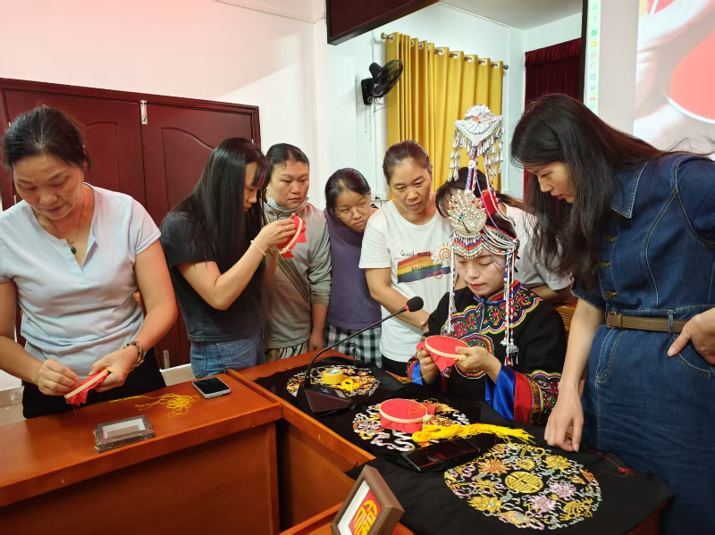 “以前总觉得畲族刺绣是摆在博物馆里的‘老古董’,看得见摸不着,今天亲手绣出这个‘福’字,感觉特别有成就感,好像和历史有了一次对话!”村民李阿姨捧着自已的作品,爱不释手,兴奋地表示,“回家后我要教给家里的孩子,让这门漂亮的手艺能在我们年轻一代手里传下去。”