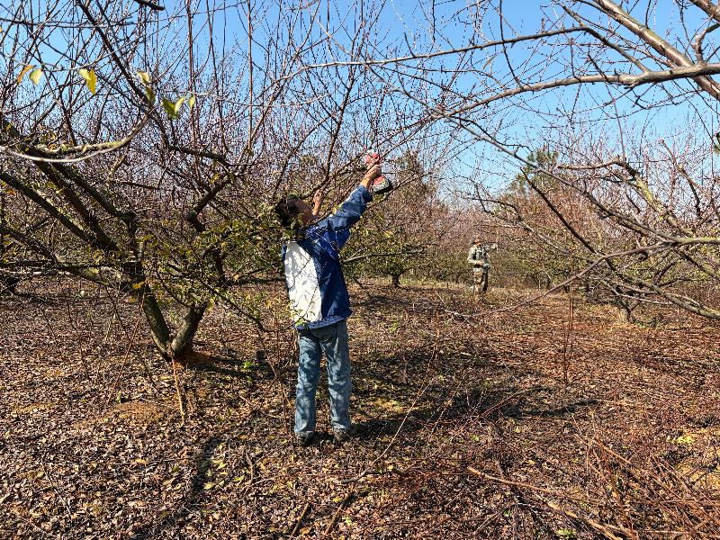 眼下虽未到果园采摘收获的最佳时节,但城南镇绿仹生态农场的冬季田间管理工作已提前有序展开。果农们通过标准化管护技术对果树开展修剪、清园等管护作业,为来年果品丰收打基础。