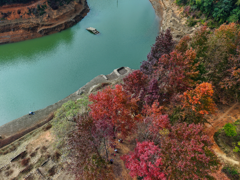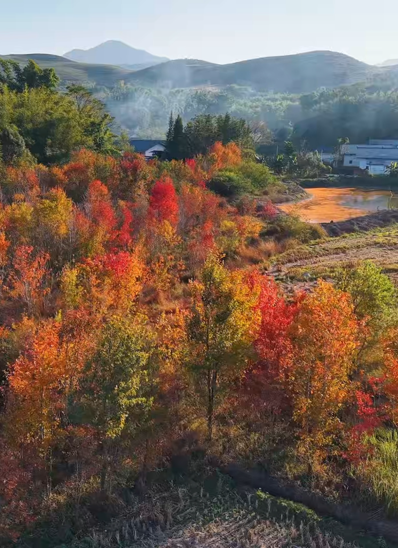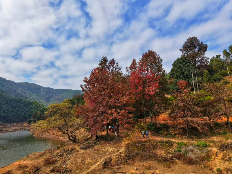 冬日时节,我县马市镇岭头村因一片湖畔红枫林悄然走红。远山如黛、碧水含烟,火红的枫林与湖光山色相映成趣,不仅勾勒出“湖光山色两相和”的绝美景致,更成为游客逃离喧嚣、拥抱自然、寻觅诗意的网红打卡地。