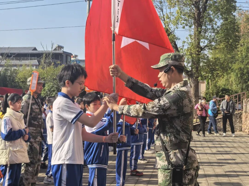 12月19日上午,曲江一小300余名六年级学生身着统一校服,走进粤北红围国防教育实践基地。他们认真聆听历史讲解、驻足观看文物陈列,在旗帜引领下踏上3公里“重走长征路”情景教学体验步道,还参与了模拟手榴弹投掷、装甲车乘坐等国防主题体验项目,在沉浸式实践中感悟革命岁月。