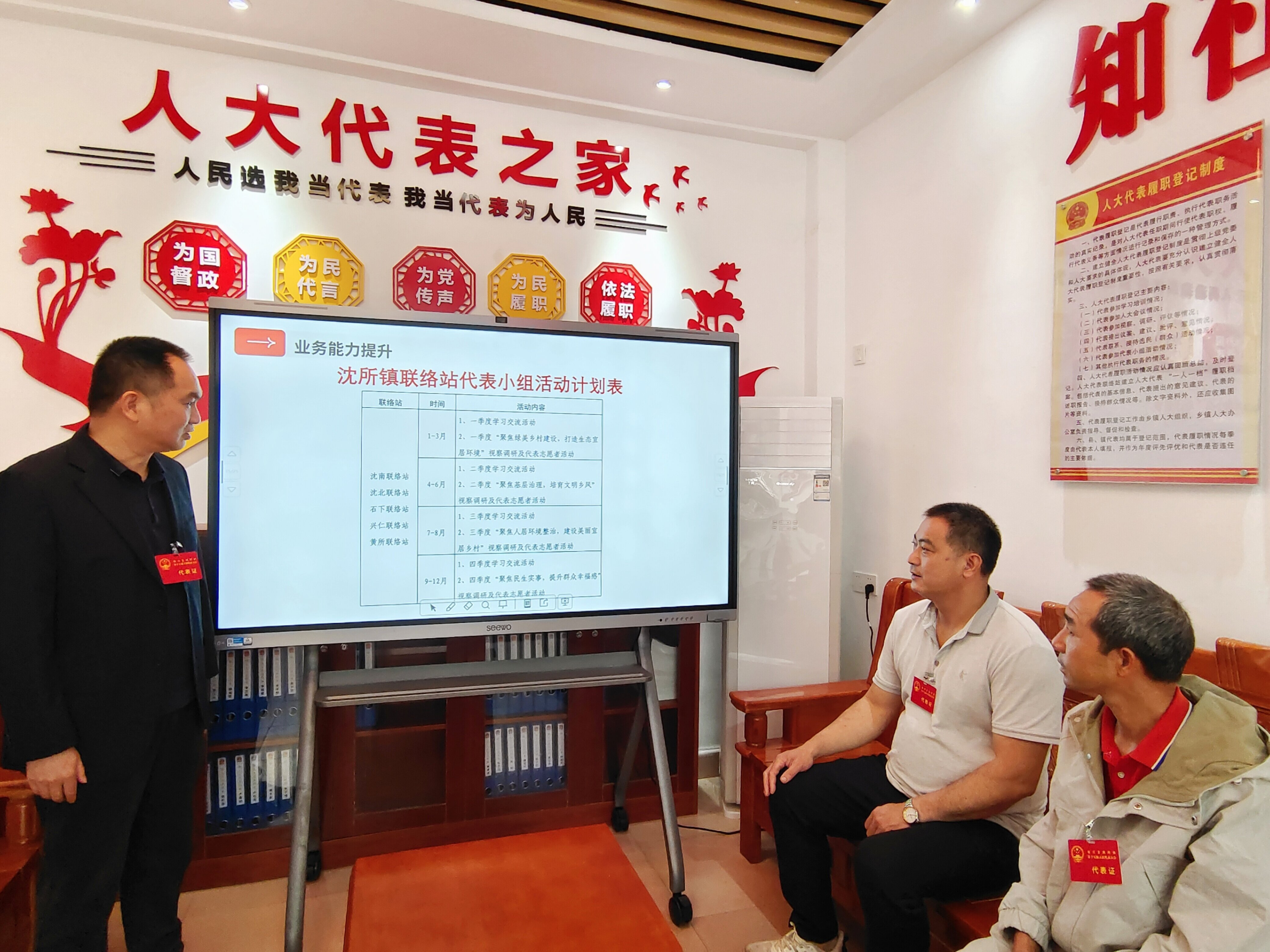 此次培训以夯实法律基础、提升业务能力、强化活动指导为核心内容,重点学习了新修订的《代表法》,并详细讲解了省数字人大代表工作域建设标准,做好代表联络站线上线下一体化建设,做好代表履职登记、代表接待选民记录、代表小组活动记录等业务再提升。同时,指导各联络站以“察民情惠民生助力百千万·人大代表在行动”为主题活动为牵引,在镇党委的领导下,以“六个聚焦”为着力点,结合各联络站实际情况,围绕产业发展、典型镇村建设、民生实事、人居环境整治、基层治理、绿美乡村建设等重点领域开展视察、调研、志愿服务等代表活动,切实发挥人大代表的桥梁纽带作用,推动解决群众关心的热点难点问题。