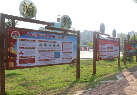 二是兴建宣传栏。分别在九龄文化广场、全民健身广场和县城主要街道兴建了6个人防教育宣传专栏,向广大市民宣传人防法律和人防知识 。