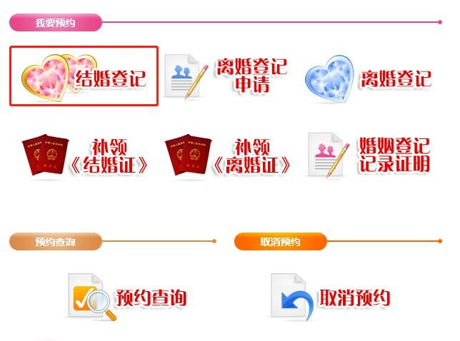 2、点击“我要预约”菜单栏下的“结婚登记”,进入结婚登记预约页面。