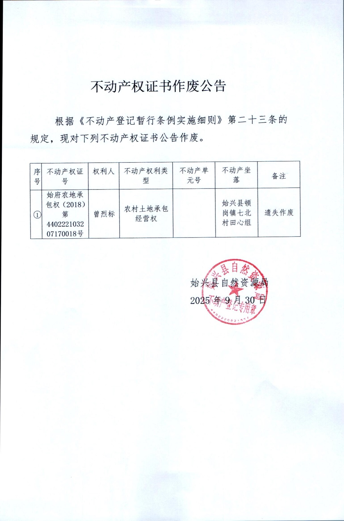 不动产权证书作废公告