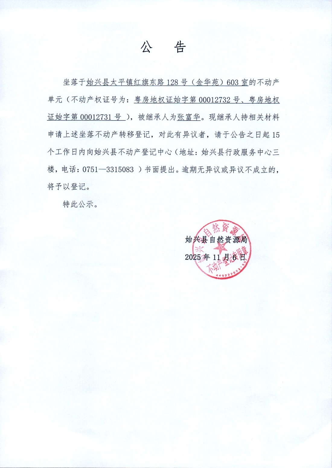 张富华非公证法定继承