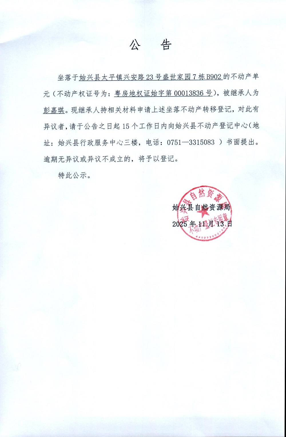 彭嘉琪非公证法定继承