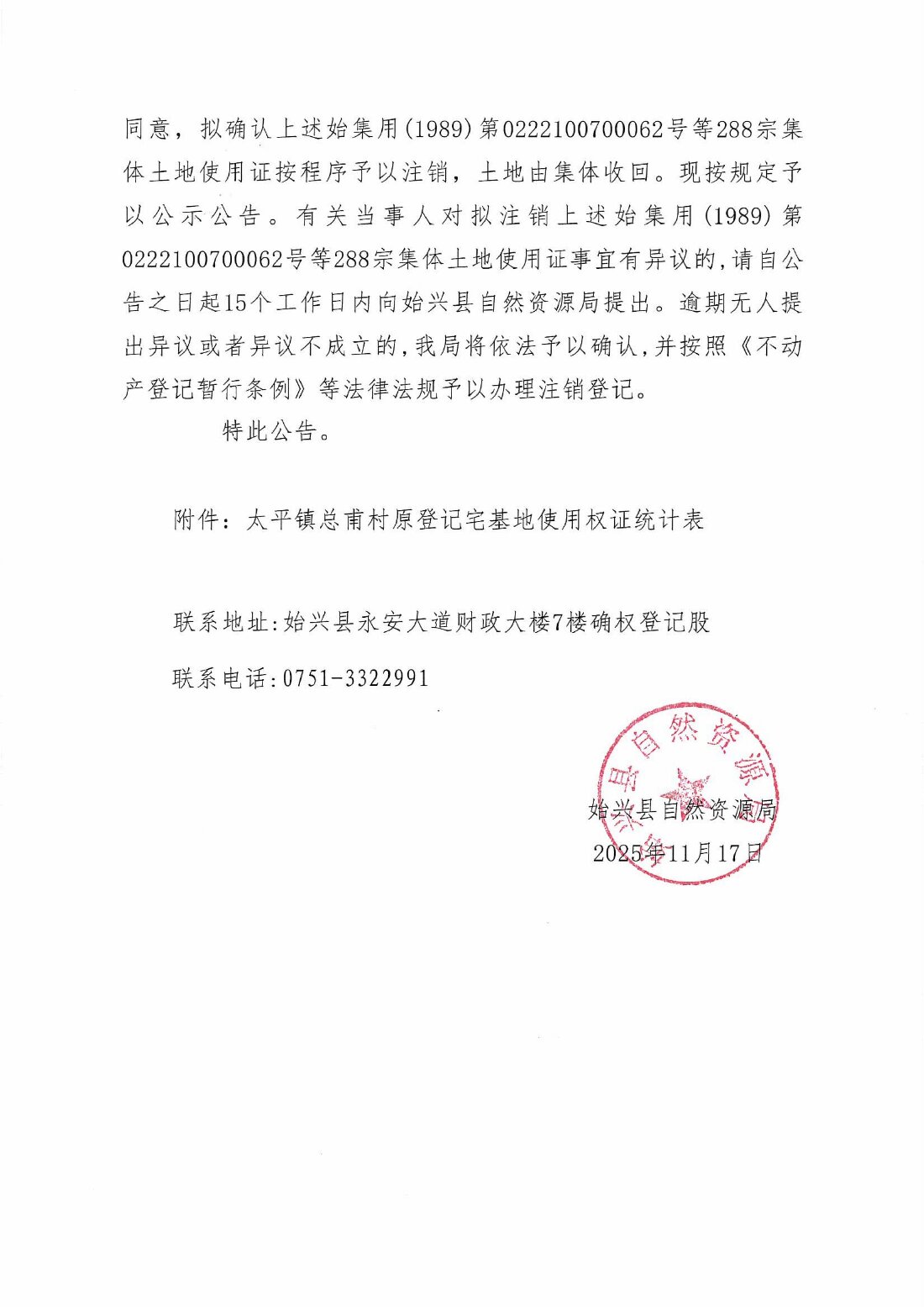 太平镇总甫村原登记宅基地使用权证统计表.pdf