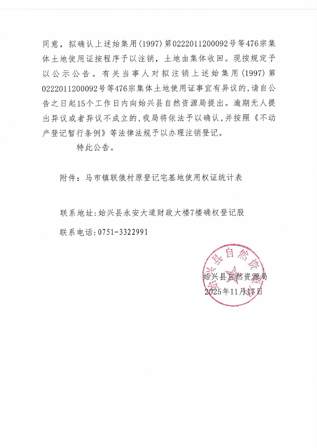 关于注销始集用(1997)第0222011200092号等476宗产权证书的公告