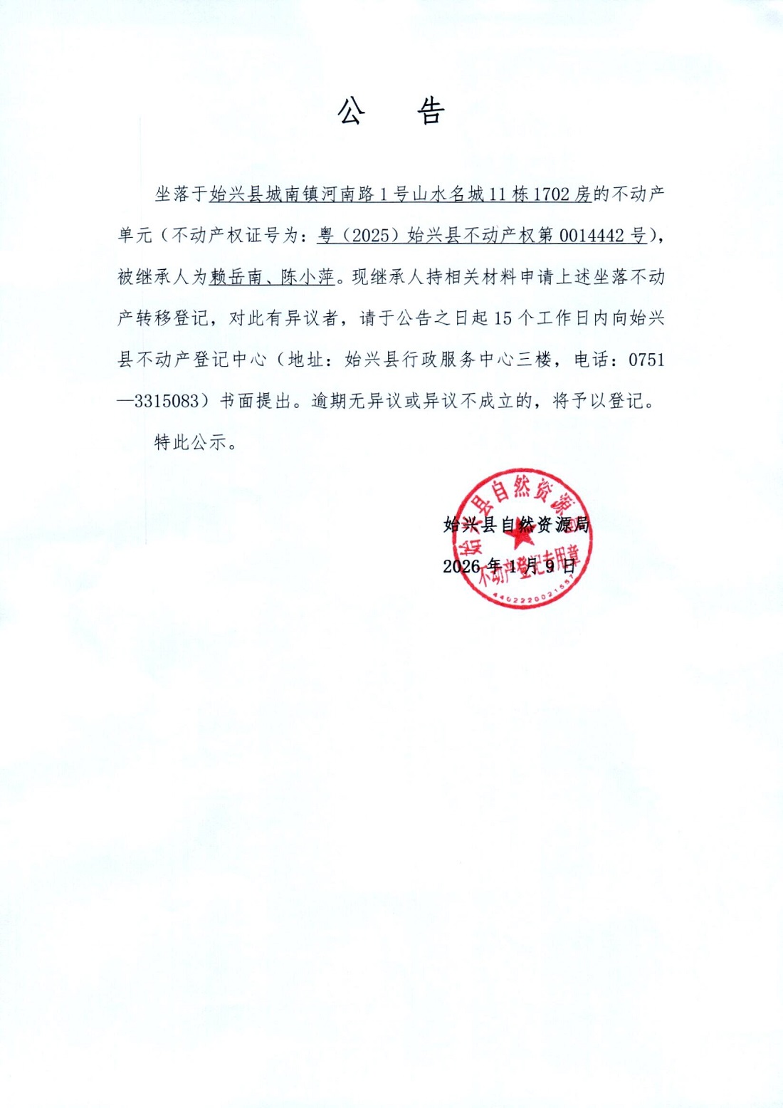 赖岳南、陈小萍公证法定继承