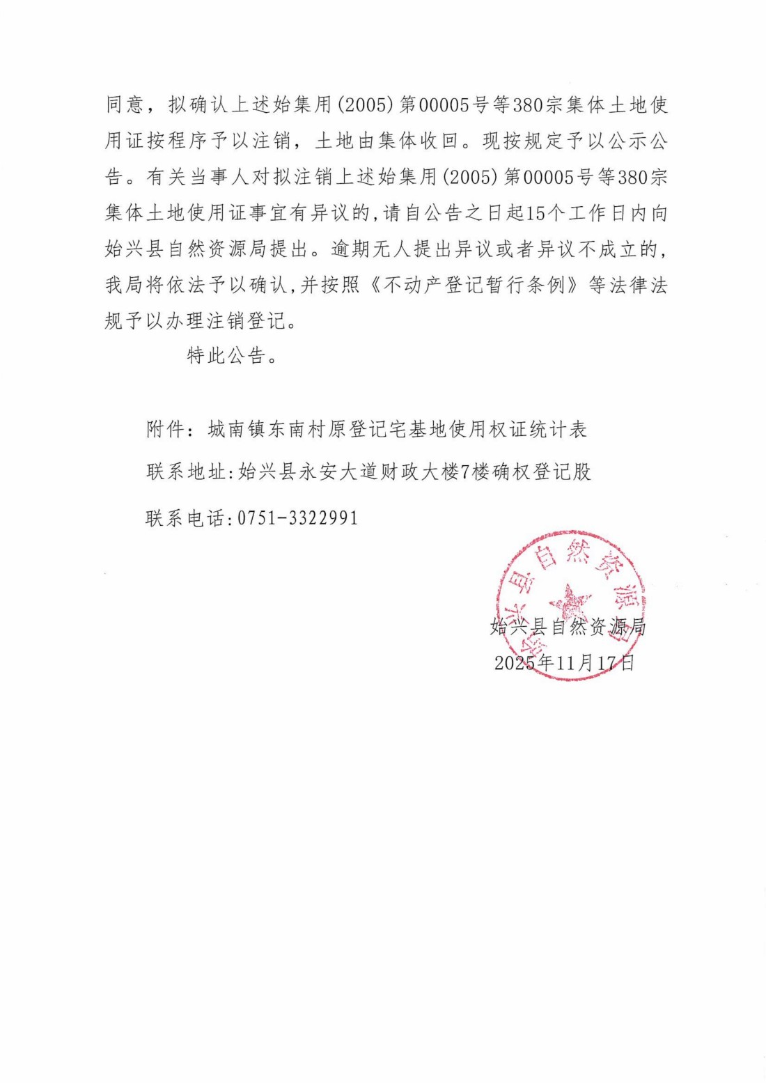 关于注销始集用(2005)第00005号等380宗产权证书的公告