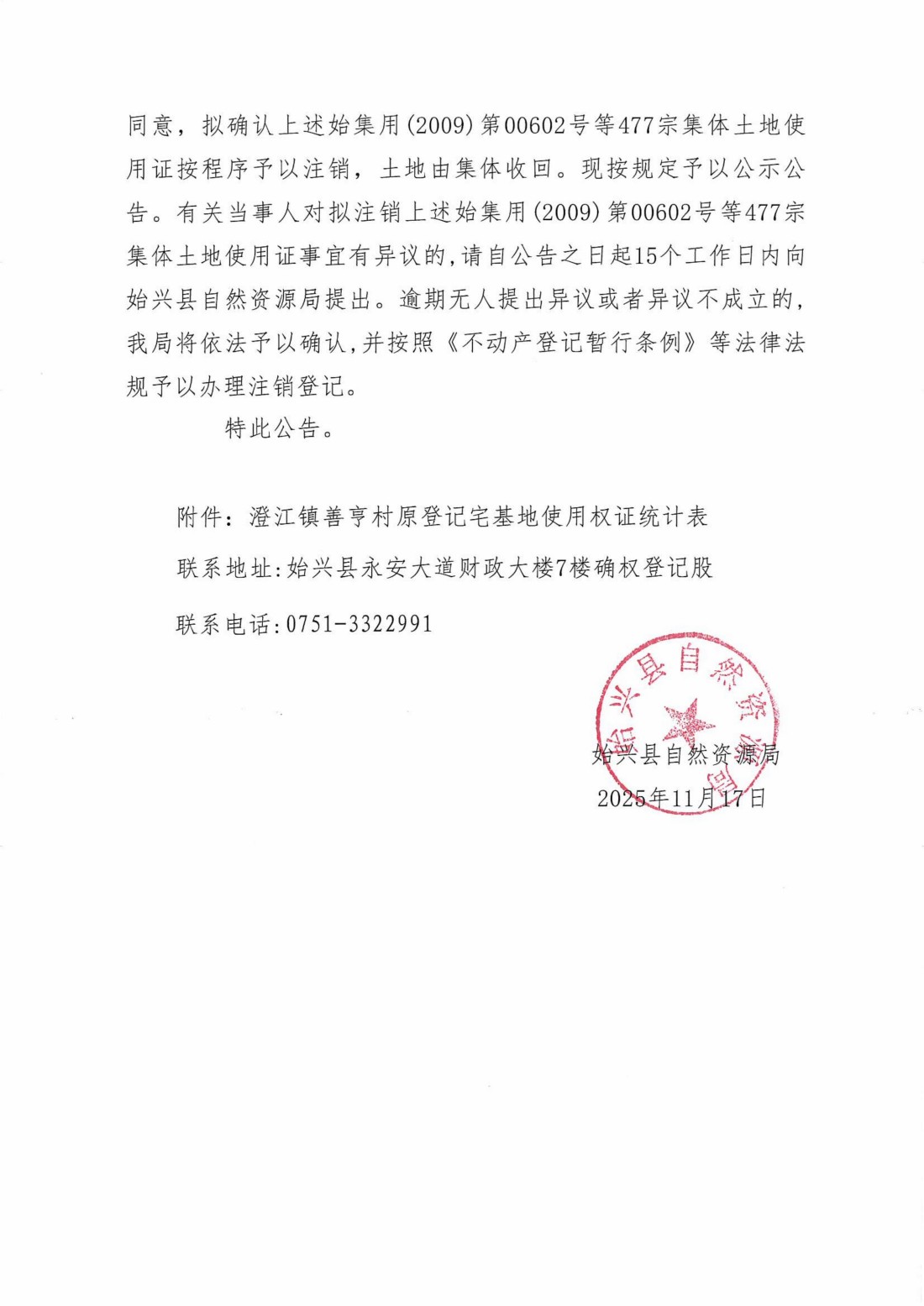 关于注销始集用(2009)第00602号等477宗产权证书的公告