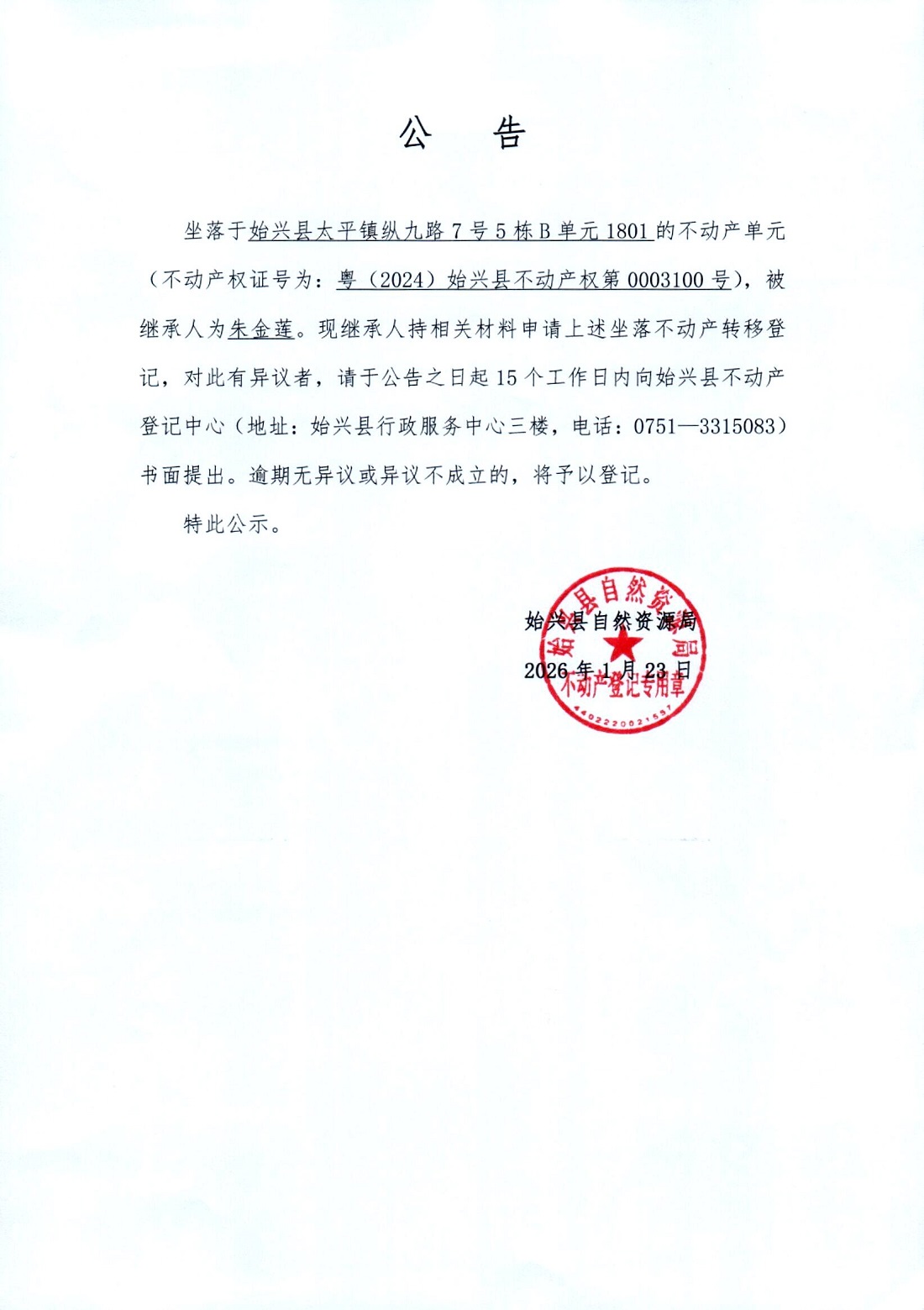 朱金莲公证法定继承