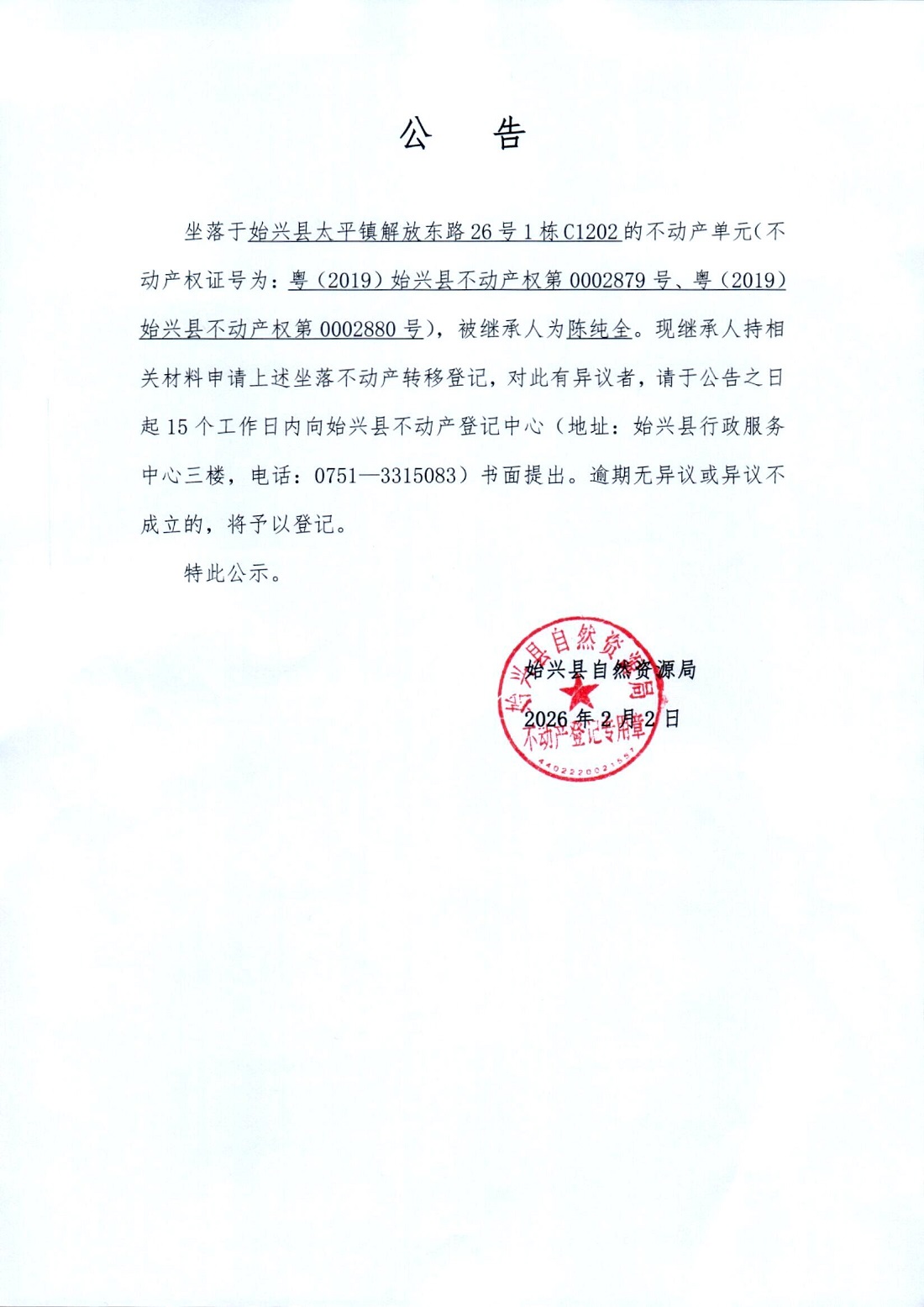 陈纯全公证法定继承