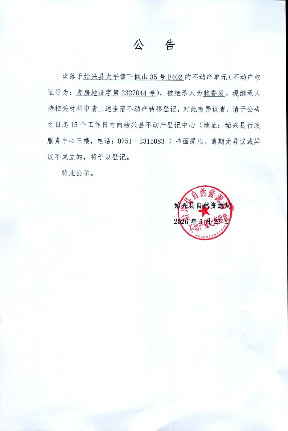 赖香发非公证法定继承