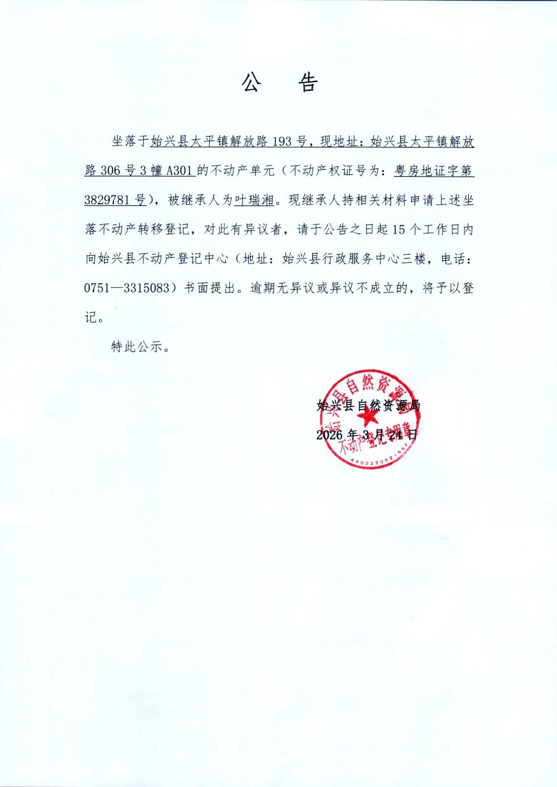 叶瑞湘非公证法定继承